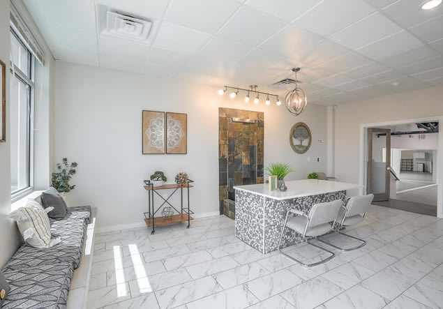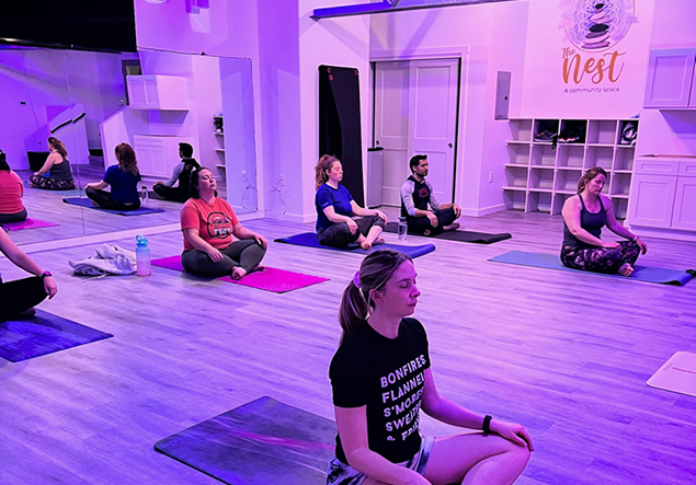The Nest features 1600 square foot space equipped with an amazing sound system you can connect your phone to and play music from your favorite app. Smart panels control the music, temperature, and lighting, featuring smart bulbs with millions of colors, you can create the perfect theme that will play and move to the beats of your music. Create the atmosphere you want for your sessions. Spa-like restrooms, showers, and lobby with a soothing water wall to bring the sounds of nature into the space. The floors are waterproof and antimicrobial, antibacterial bulbs throughout the space kill bacteria, germicidal lights in the HVAC kill bacteria, mold, and pollens. A high-speed fan pulls the air from the room after every class. The oversized HVAC unit creates a strong airflow in the exercise room. An infrared heater heats up the space for those of you that like it hot. The walls and floors are sound insulated, the facility is ADA compliant and there is not an elevator.